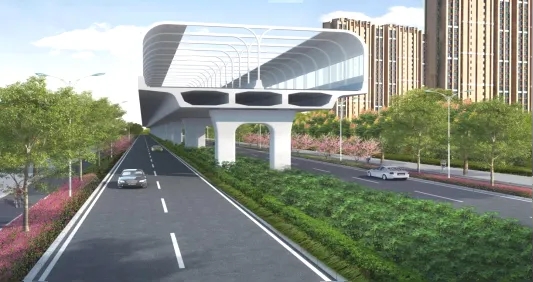 ? ? 跨三環(huán)線慢行橋采用桁架梁結(jié)構(gòu),桁架以“江城鐵運(yùn)”為設(shè)計(jì)概念,以飛馳而過的火車為設(shè)計(jì)意向,形成動(dòng)感而具有生命力的橋梁造型。在桁架之間固定的防拋網(wǎng)中采用連綿起伏的山形鋼條作為裝飾,如火車飛馳經(jīng)過群山,使天橋整體富有故事感。