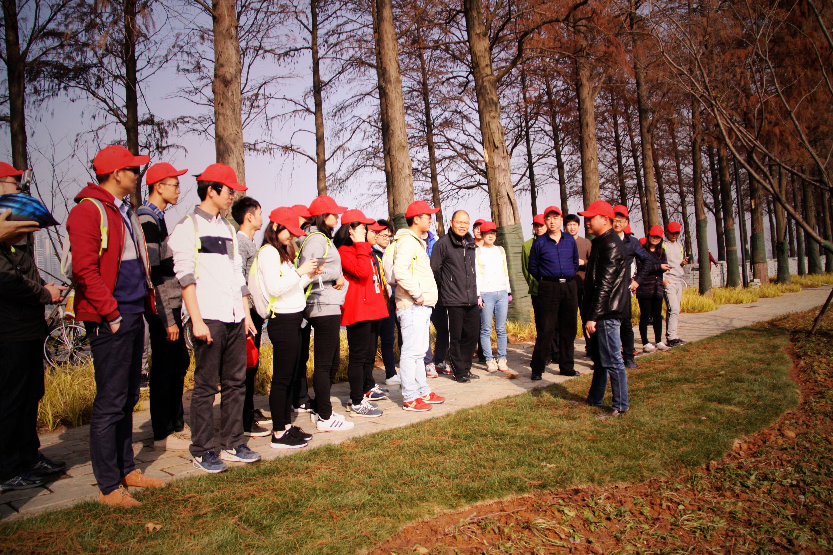 ??? 在景觀專業(yè)副總工程師彭鐘的引導下,參觀隊伍自梨園廣場出發(fā),沿東湖綠道騎行,并在湖心島、鵝咀、塘野蛙鳴等重要景觀節(jié)點駐足參觀,聽取該項目在景觀布置、意境營造等方面的獨特創(chuàng)意。