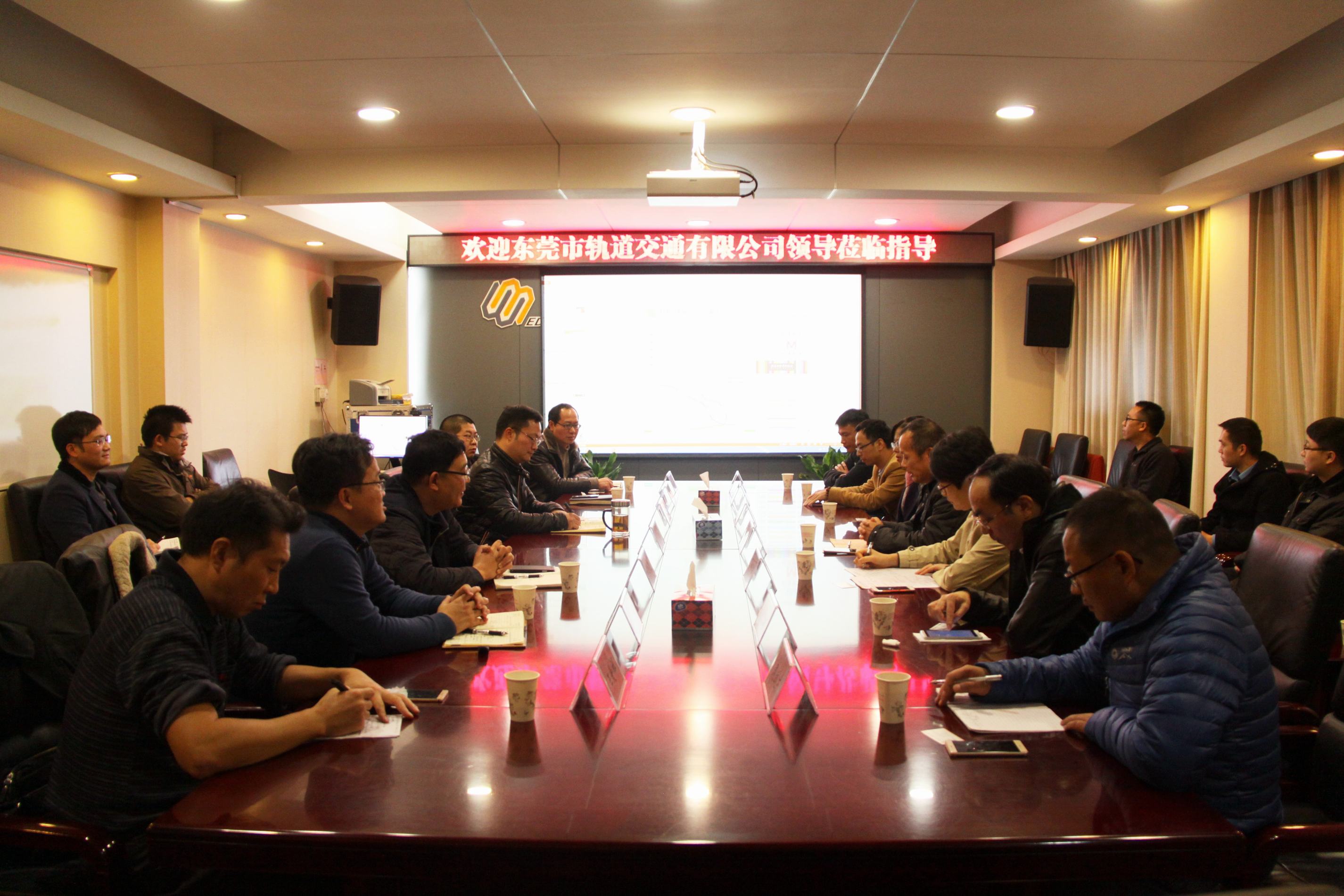 ??? 12月22日下午,東莞市軌道交通有限公司工程部部長王小忠、黨群部部長盧利清等一行10人蒞臨公司考察指導(dǎo),公司副總經(jīng)理陳建斌、總經(jīng)理助理郝建強以及相關(guān)部門負(fù)責(zé)人及技術(shù)人員參加了座談。