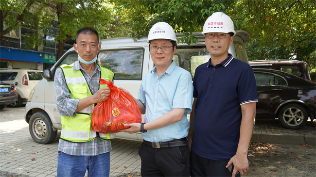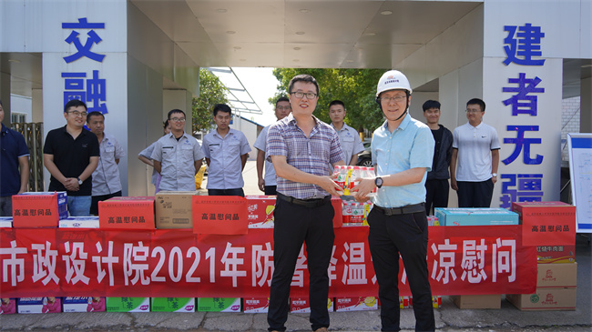 公司領(lǐng)導(dǎo)先后來到長江新城諶家磯再生水廠工程、湯遜湖污水處理廠尾水排江工程總承包項目、環(huán)湖中路排水工程測量、龍王嘴污水處理廠、青山海綿城市等項目現(xiàn)場,詳細了解項目進展情況、高溫防暑措施和疫情防控情況,并為堅守崗位的員工們送上高溫慰問品,感謝他們在城市建設(shè)中做出的積極貢獻,叮囑他們做好防暑降溫和個人防護,注意勞逸結(jié)合,在保證項目按期推進的同時務(wù)必保證個人的安全與健康。